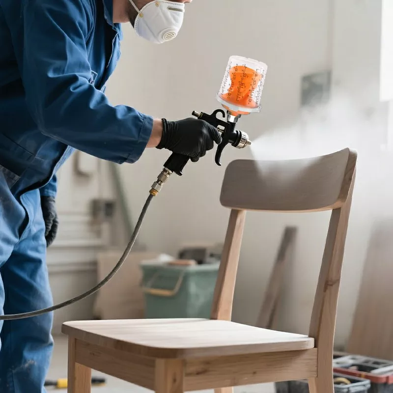 Mobilya ve ahşabın düzensiz yapısı, püskürtme sırasında püskürtme tabancasının sık sık eğilmesini gerektirir. Ayspat tek kullanımlık boya kabı, damlayan boyayı önlemek için püskürtme sırasında 360 ° döner ve kapak farklı püskürtme açılarını karşılamak için tekrar tekrar birden fazla yönde bükülebilir. Ahşap kapılar, dolaplar ve masif ahşap mobilyalara PU/NC boya püskürtmek için idealdir.