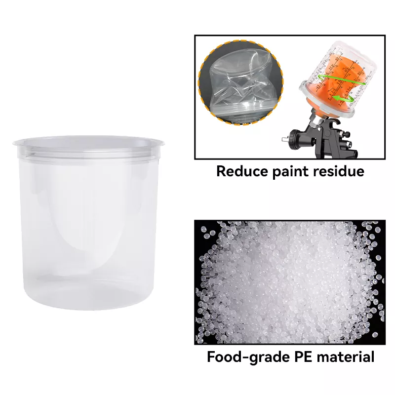 Ayspat Tek kullanımlık püskürtme tabanca bardağı, kullandıktan sonra astarın hemen değiştirilmesine izin vererek temizlik ihtiyacını ortadan kaldırır. Bu sadece temizleme ajan maliyetlerini azaltmakla kalmaz, aynı zamanda püskürtme sürelerini de korur, sprey verimliliğini artırır.Dispososed sprey bardaklar, geleneksel metal sprey bardaklarının eksik temizliğinden kaynaklanan artık boya kalıntısının neden olduğu renk kaymasını da önler. Tek kullanımlık sprey bardaklar, inci ve metalik boyalar gibi üst düzey kaplamaların püskürtülmesi için özellikle uygundur, bu da onları üst düzey otomotiv yeniden canlandırma için en uygun seçimdir.